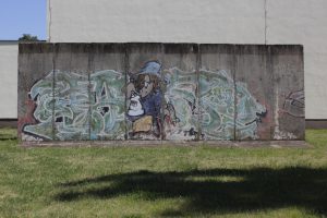 Die hier aufgestellten Mauersegmente wurden nach dem 03. Oktober 1990 im Raum Potsdam/Kleinmachnow abgebaut. Sie gehörten in den Grenzsicherungsabschnitt des Grenzregiments 44 Kleinmachnow. Abgebaut wurden diese zentral durch Grenzpioniere und Unterstützungskräfte der NVA. Danach wurden die Segmente in Kleinmachnow eingelagert. Das Pionierbataillon 801, das von 1991 bis 2006 in der Kurmark Kaserne stationiert war, brachte die Mauersegmente schließlich nach Storkow.